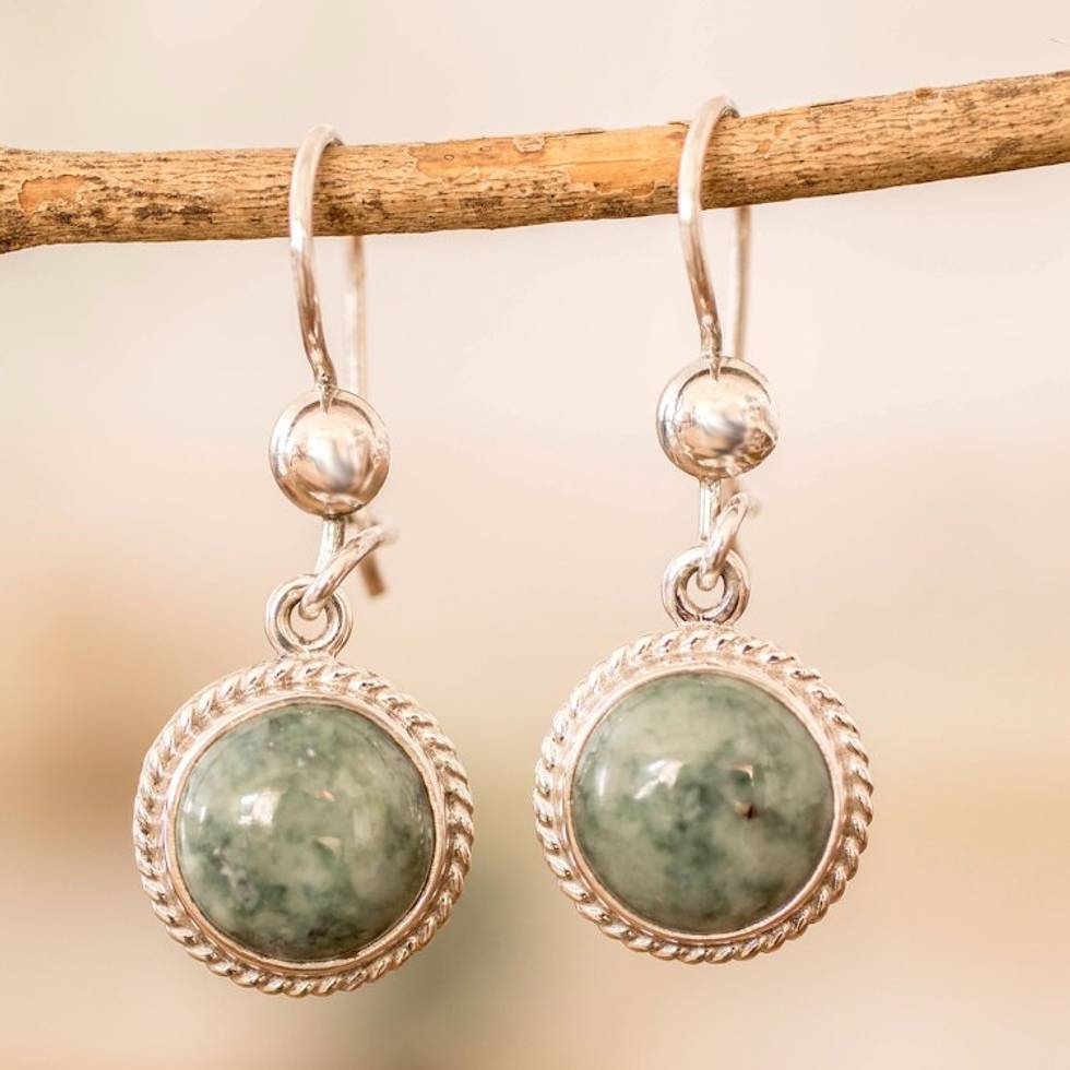 Hand Made Sterling Silver Dangle Jade Earrings 'Mixco Moon' Item ID: 2671626831