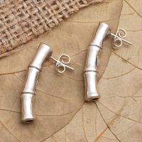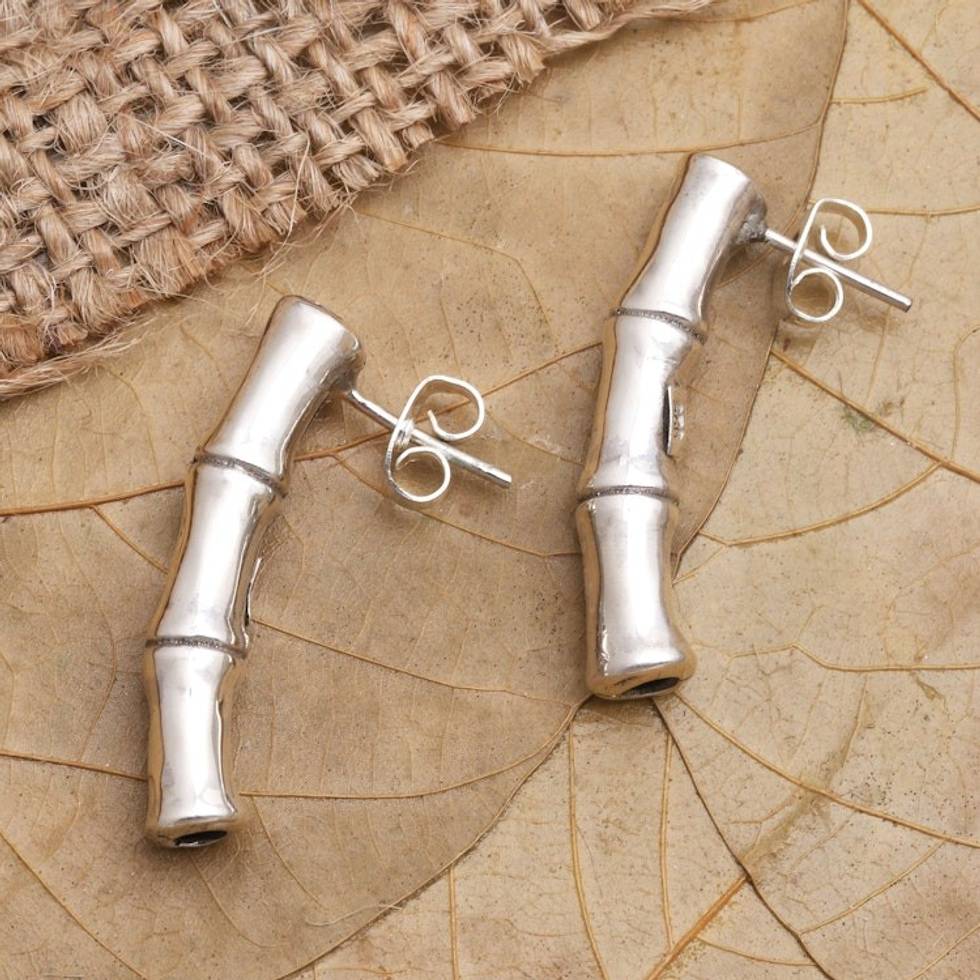 Hand Made Sterling Silver Drop Earrings 'Bamboo Intrigue' Item ID: 2669922794