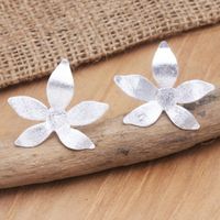 These earrings are beautifully simple. Soldered to a little silver hook is a sterling silver flower. The flower is dainty and three dimensional. These earrings go beautifully with the jasmine shimmer and silver breeze necklaces I have purchased from this artist previously. Thank you for sharing your talent with me!