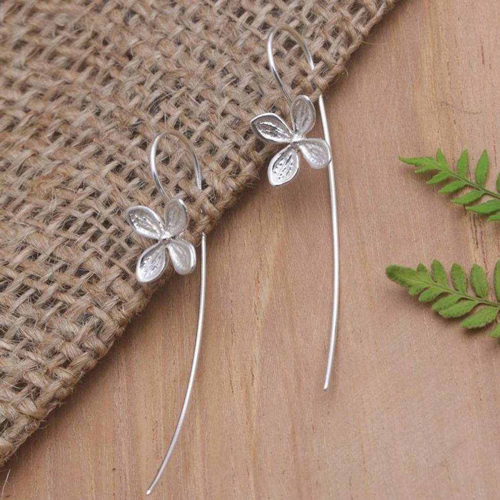 Hand Made Sterling Silver Drop Earrings with Floral Motif 'Floral Wisp' Item ID: 2671748391