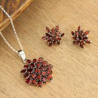 Hand Made Sterling Silver Garnet Pendant Necklace India 'Red Sunflower' Item ID: 2669942918