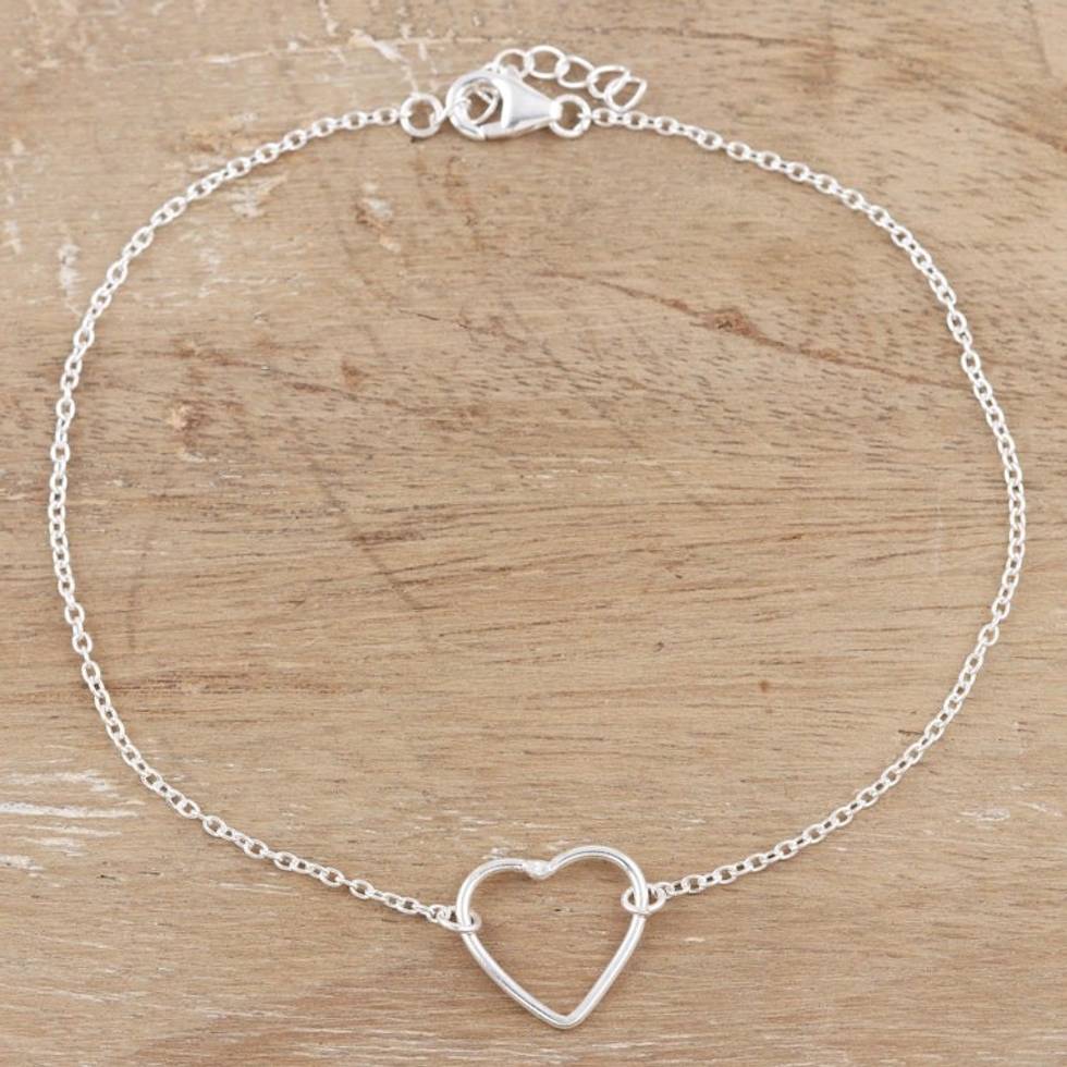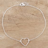 Hand Made Sterling Silver Heart Anklet 'Intimate Heart' Item ID: 2669944154