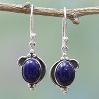 Hand Made Sterling Silver Lapis Lazuli Dangle Earrings India 'Blue Ovals' Item ID: 2669956357