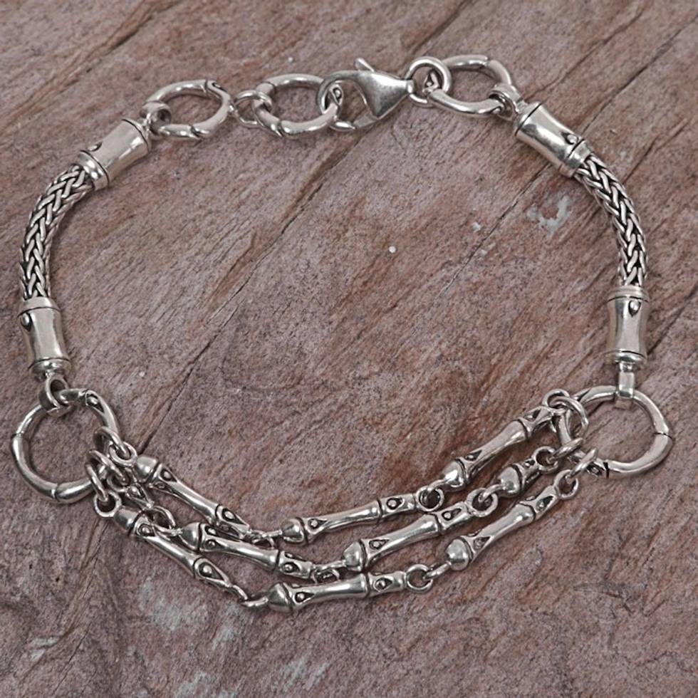 Hand Made Sterling Silver Link Bracelet from Indonesia 'Kuta Ropes' Item ID: 2671702621