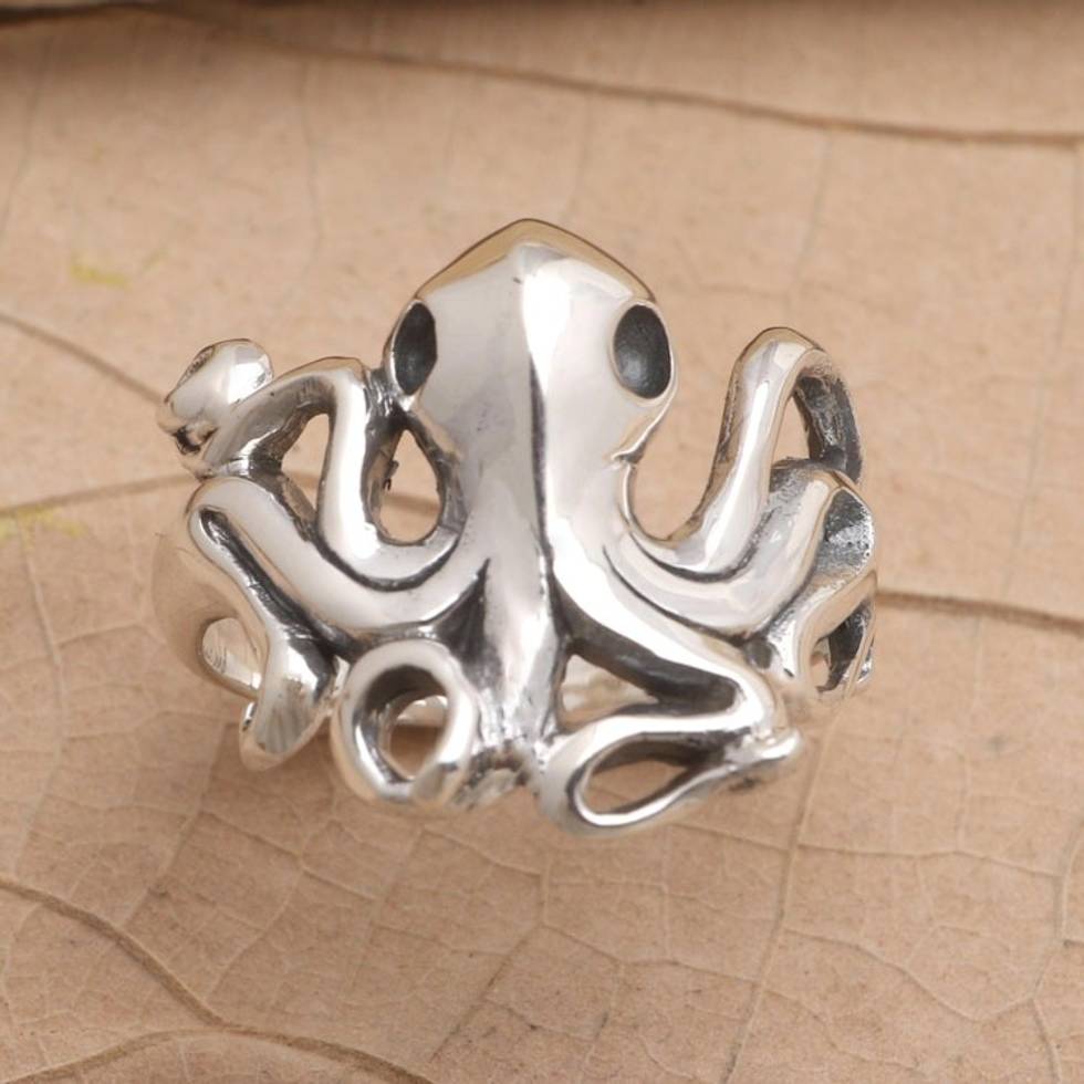 Hand Made Sterling Silver Octopus Ring 'Octopus Friend' Item ID: 2669923010