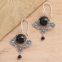 Hand Made Sterling Silver Onyx Bead Dangle Earrings 'Lost Shadow' Item ID: 2671745759