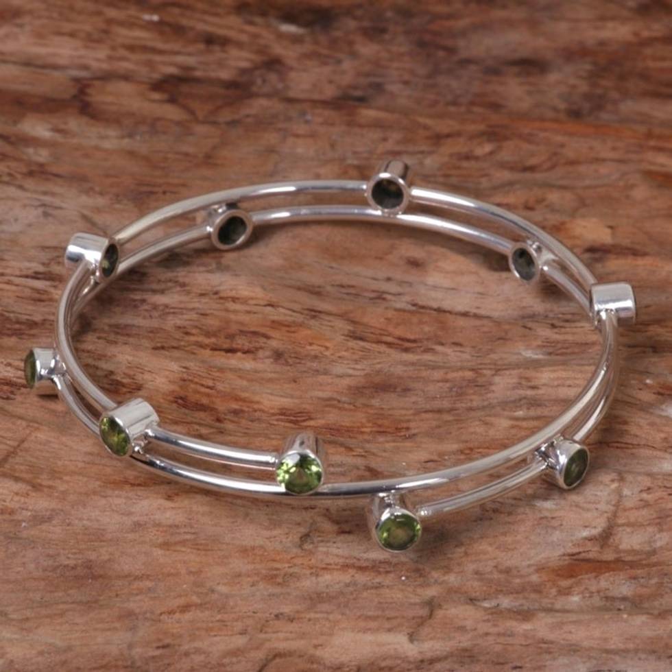 Hand Made Sterling Silver Peridot Bangle Bracelet Indonesia 'Orchid Twist in Green' Item ID: 2671702462