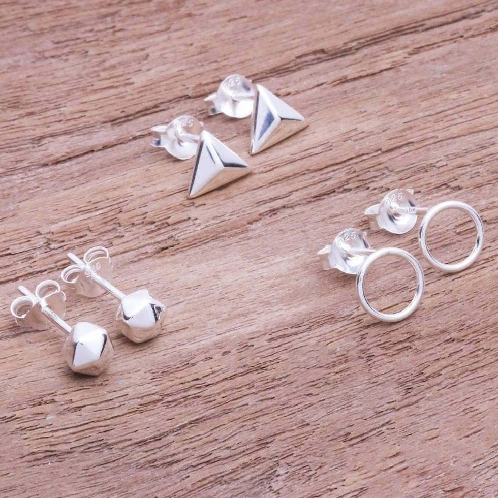 Hand Made Sterling Silver Stud Earrings Set of 3 'Every Day Look' Item ID: 2671640990