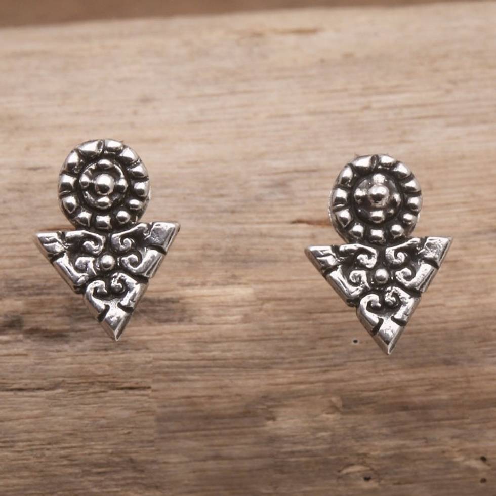 Hand Made Sterling Silver Stud Earrings 'Time's Arrow' Item ID: 2671748622