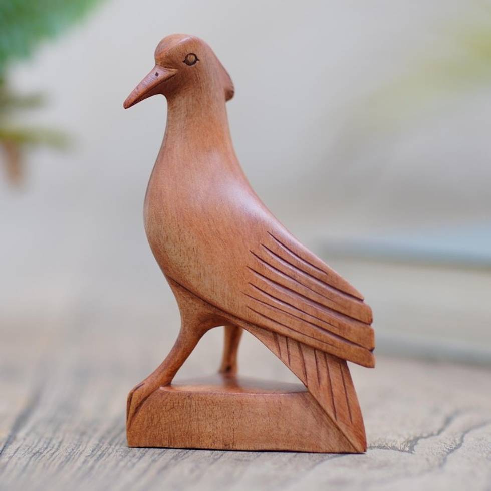 Hand Made Suar Wood Bird Sculpture 'Baby Dove' Item ID: 2671746171