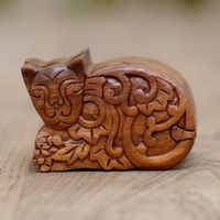 Hand Made Suar Wood Cat Puzzle Box 'Sleepy Cat' Item ID: 2671568647