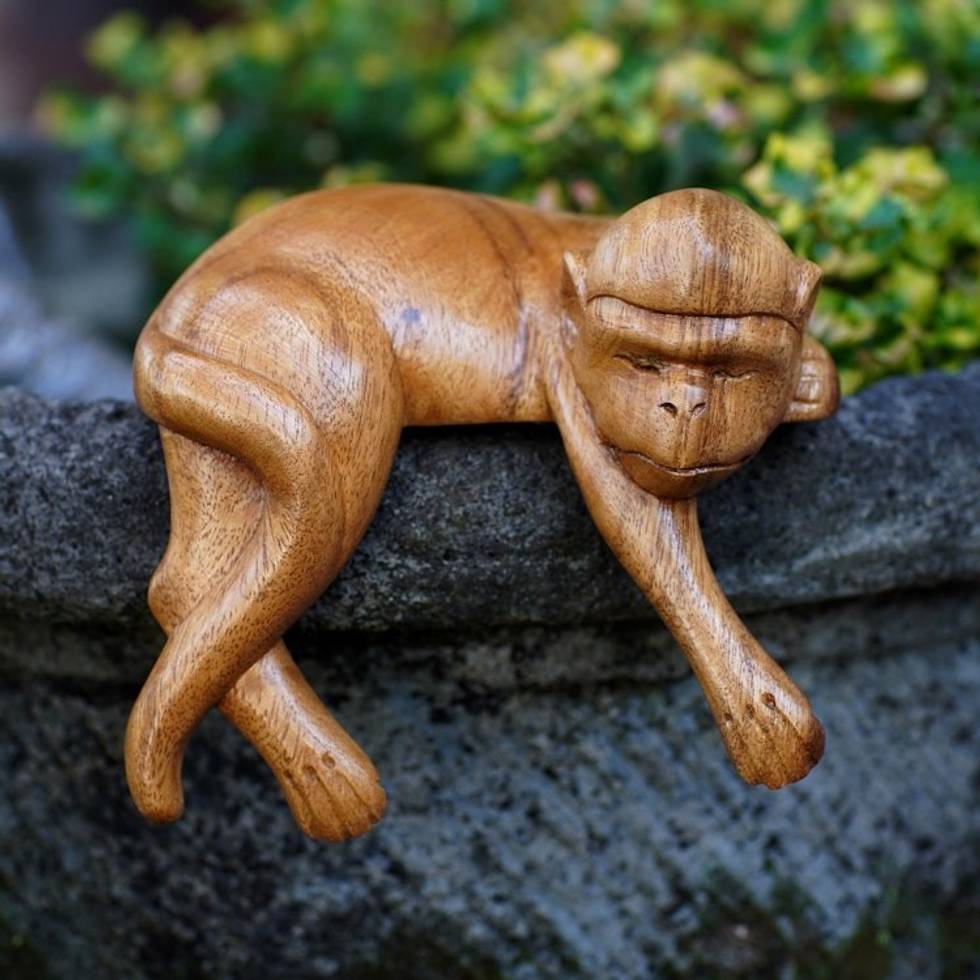 Hand Made Suar Wood Monkey Statuette 'Sleeping Monkey in Brown' Item ID: 2671747291