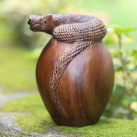 Hand Made Suar Wood Snake Statuette 'Shedding Snake' Item ID: 2671745051