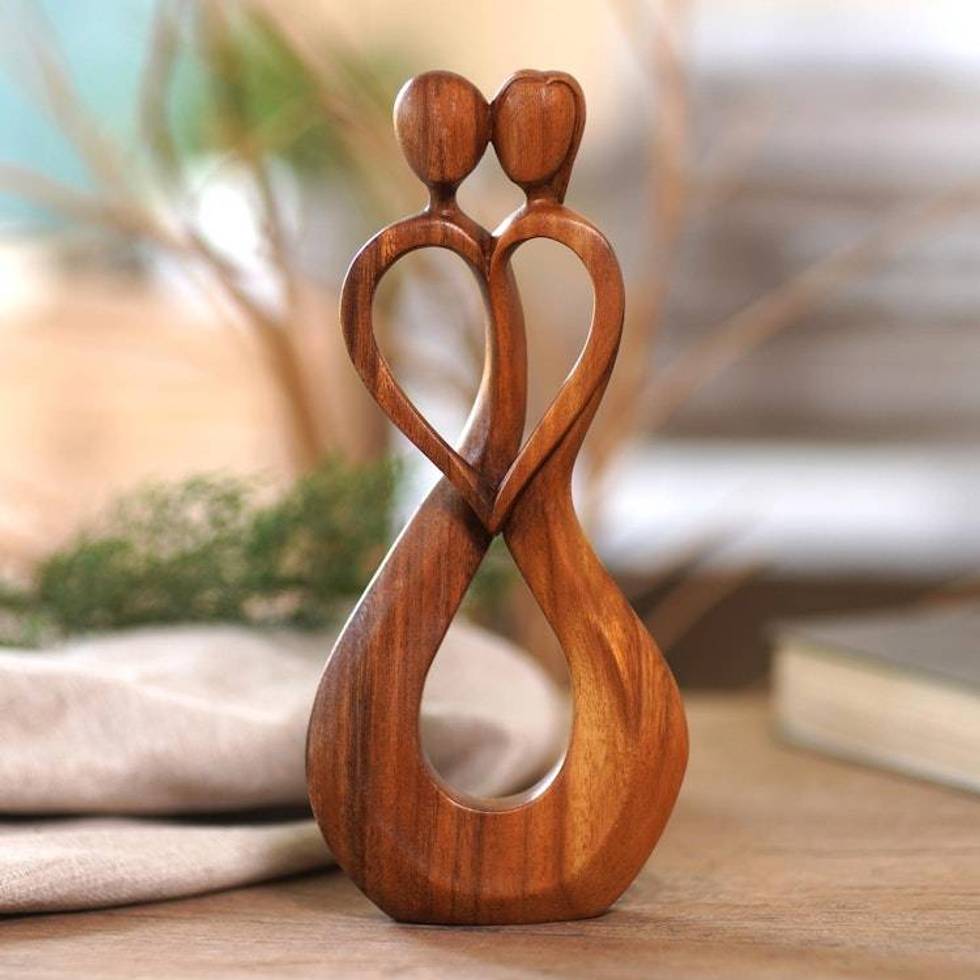 Hand Made Suar Wood Statuette from Bali 'Caring Partners' Item ID: 2676667716
