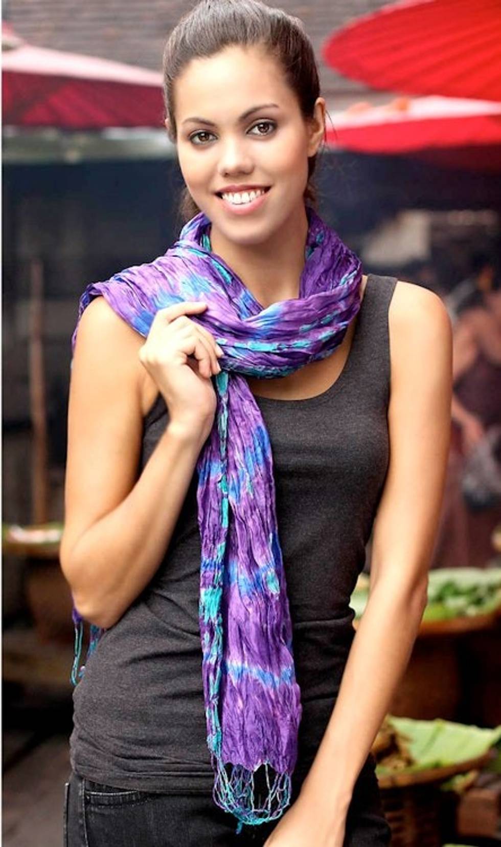 Hand Made Tie-dyed Scarf 'Smoky Lily' Item ID: 2671803162