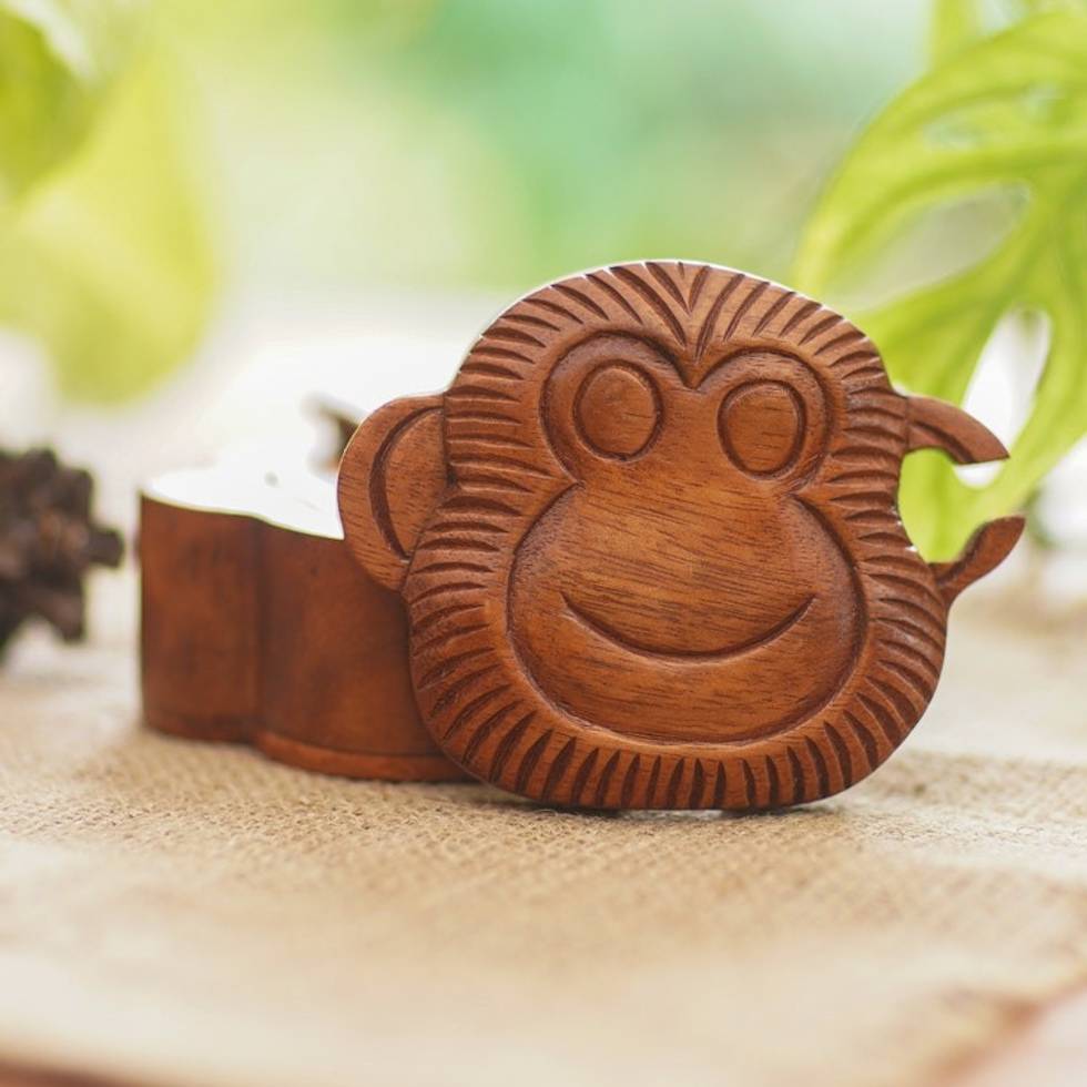 Hand Made Wood Puzzle Box Monkey Face from Indonesia 'Happy Monkey' Item ID: 2671702811