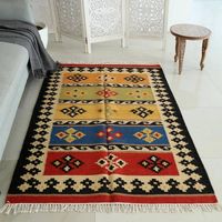 "Diligently crafted with bright colors and geometric patterns, Ashfaq Ahmed's charming area rug is a smart way to refresh your home decor. Woven by Indian artisans on a traditional handloom, the wool rug features a bright geometric pattern with a cotton warp, along with a row of playful fringe on either end."