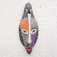 Hand-Painted African Sese Wood Mask with Aluminum Accents 'Sankofa Icon' Item ID: 2671804538
