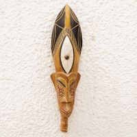 Hand-Painted African Sese Wood Mask with Brass and Aluminum 'Amahle' Item ID: 2671805478
