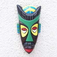 Hand-Painted African Wood Mask in Black Green Yellow Red 'Omnipresence' Item ID: 2671804380