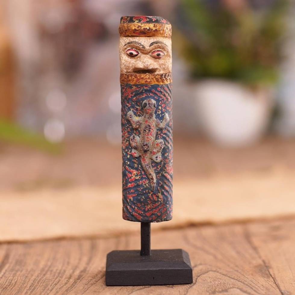 Hand Painted Albesia Wood Borneo Culture Statuette 'Dayak Sign' Item ID: 2671747657