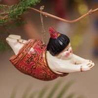 Hand-Painted Albesia Wood Ornament of Diving Woman 'Graceful Dive' Item ID: 2671762951