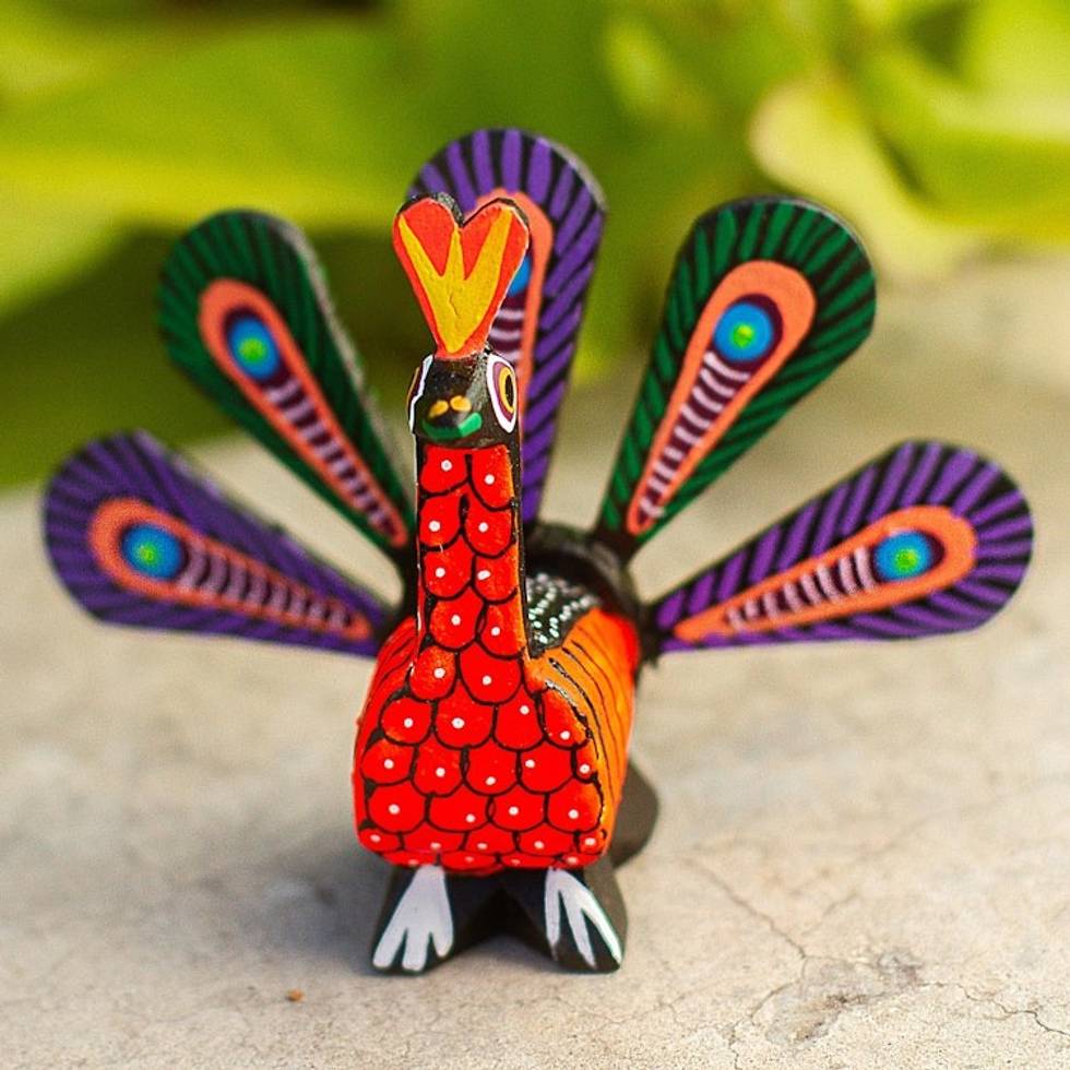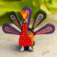 Hand-Painted Alebrije Wood Peacock Sculpture from Mexico 'Colorful Peacock' Item ID: 2669897359
