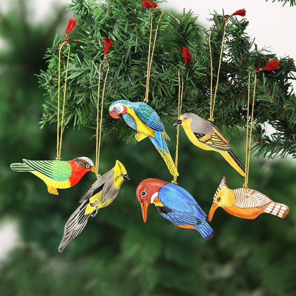 Hand-Painted Assorted Bird Ornaments Set of 6 'Festive Birds' Item ID: 2669943006