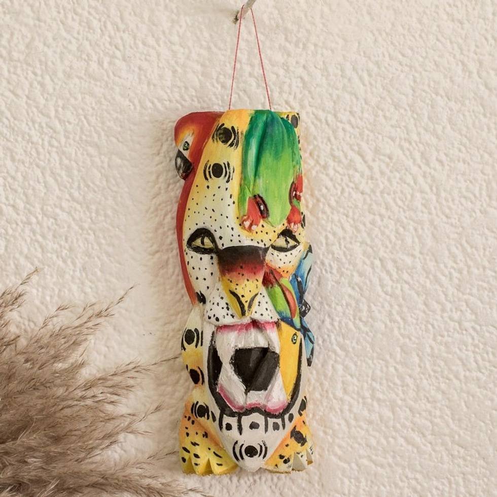 Hand-Painted Balsa Wood Mask of Jaguar and Frog 'Fierce Fauna' Item ID: 2669933216