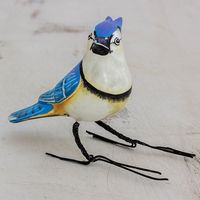 Hand Painted Blue Jay Ceramic Bird Figurine from Guatemala 'Blue Jay' Item ID: 2671626882