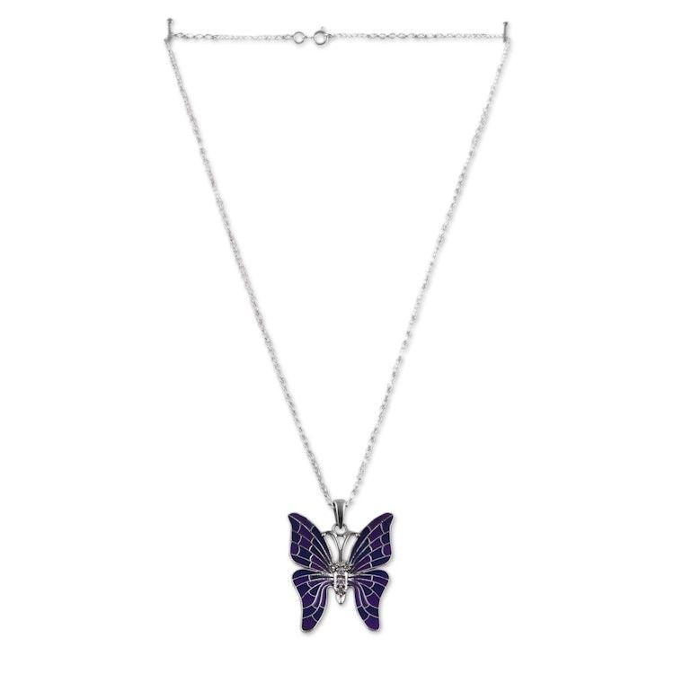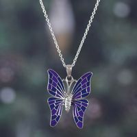 Hand-Painted Blue Sterling Silver Butterfly Pendant Necklace 'Butterfly's Magical Colors' Item ID: 2671786648