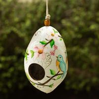 I am so happy with this beautiful birdhouse. It is my second and I am planning on buying a few more. The workmanship is amazing. It is just like the picture too.I love to sit on the porch swing and admire them. I hang them in between my plants in spring, summer, fall and in winter they cheer up my day when the flowering plants are gone. A wonderful find! I will put some in the trees next spring an... read more