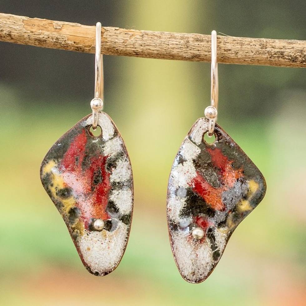 Hand-Painted Butterfly Wing Enameled Copper Dangle Earrings 'Butterfly Essence' Item ID: 2669933619