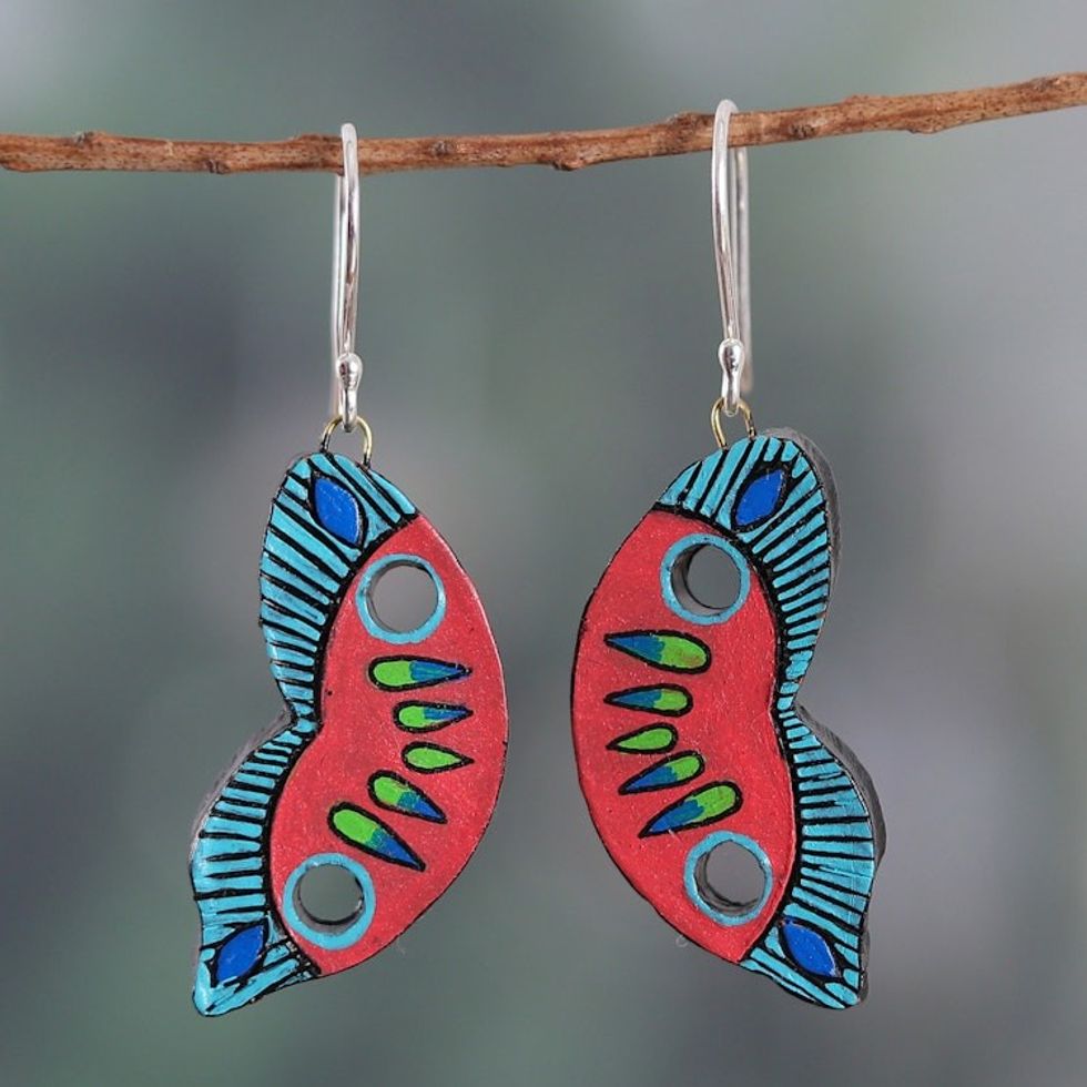 Hand-Painted Butterfly Wing-Themed Ceramic Dangle Earrings 'Glorious Wings' Item ID: 2671781628
