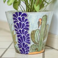 Hand Painted Cactus Motif Ceramic Planter from Puebla 'Puebla Flora' Item ID: 2669897355