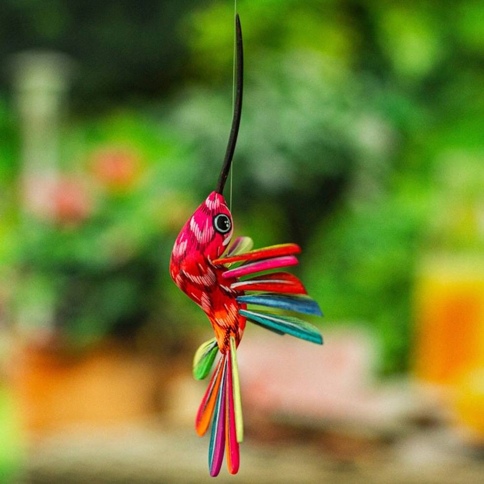 This hummingbird sculpture is so well done- beautifully carved and painted. I love the interpretation of flight. It is unique and this little guy adds much joy and whimsy to my space!