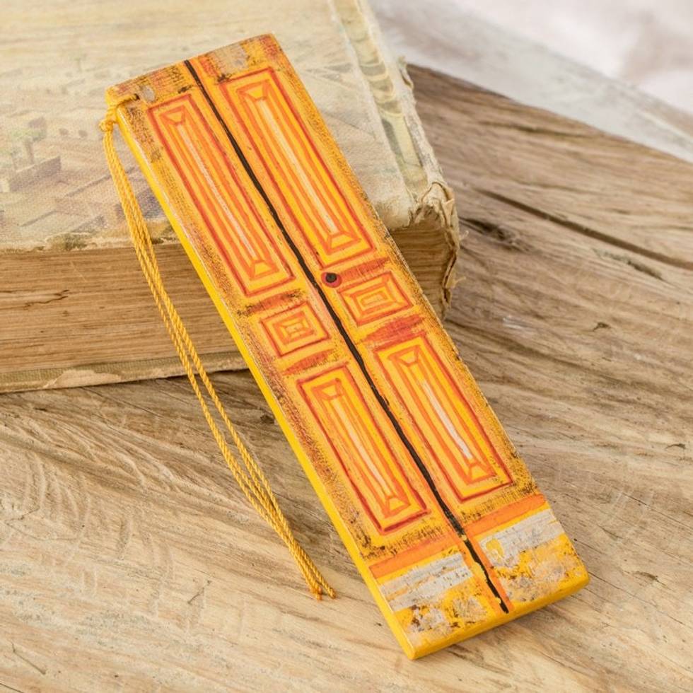 Hand-Painted Cedar Wood Antique Door Bookmark in Orange 'Vintage Door in Orange' Item ID: 2671771380