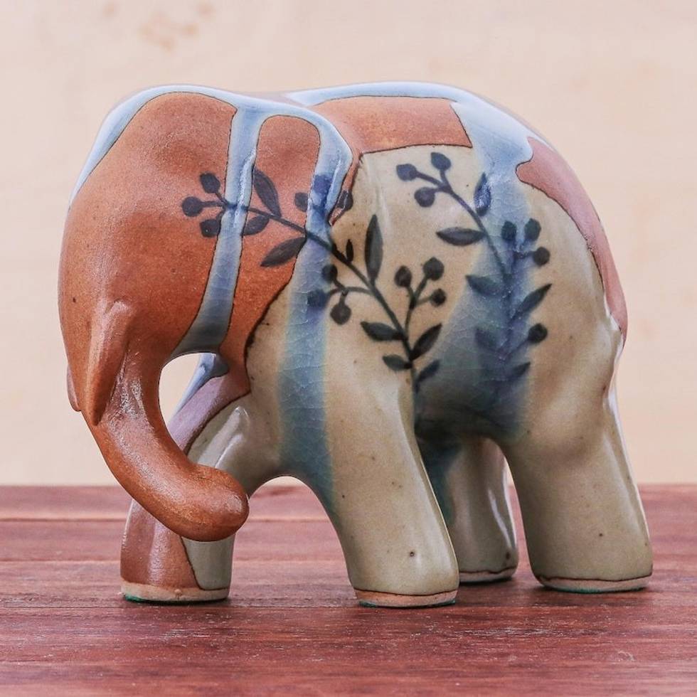 Hand Painted Celadon Ceramic Elephant Sculpture 'Walkabout' Item ID: 2671800326
