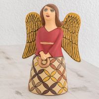 Hand-Painted Ceramic Angel Statuette from Nicaragua 'Obedient Angel' Item ID: 2671776740
