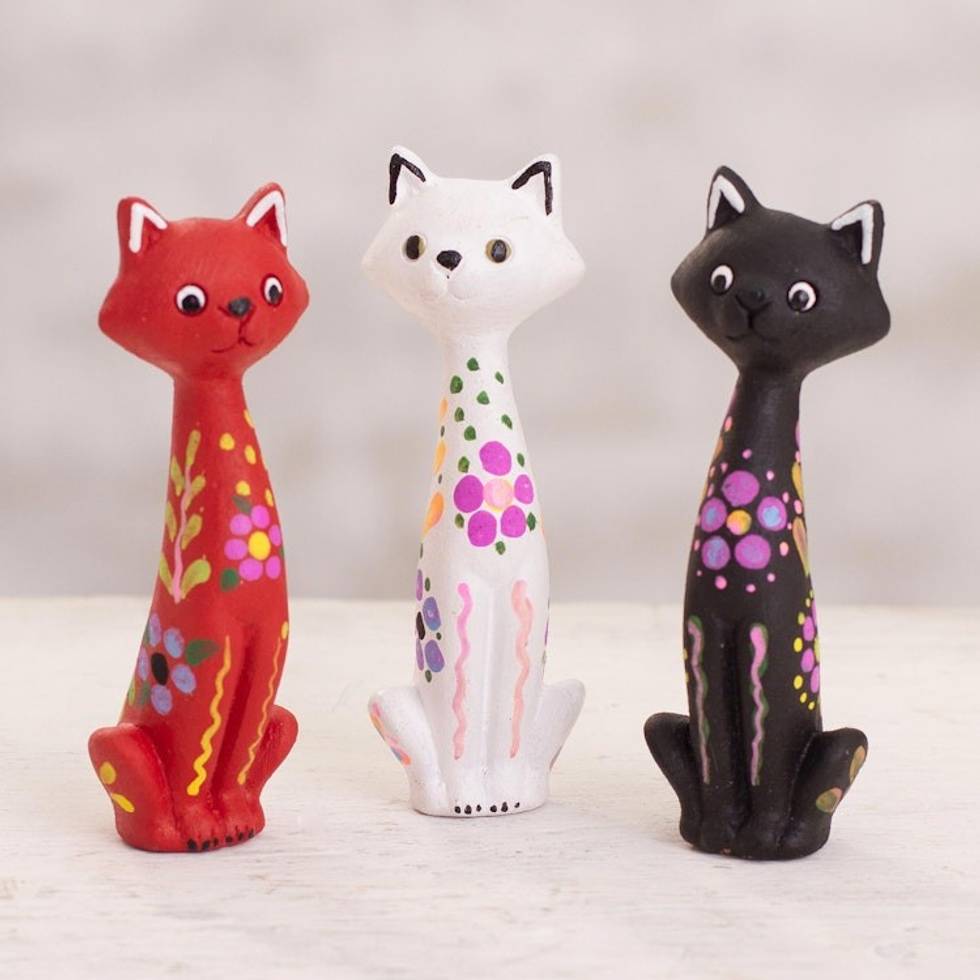 Hand-Painted Ceramic Cat Figurines from Peru Set of 3 'Colorful Kittens' Item ID: 2671820249