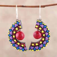 Hand-Painted Ceramic Dangle Earrings from India 'Crescent Harmony' Item ID: 2669955748