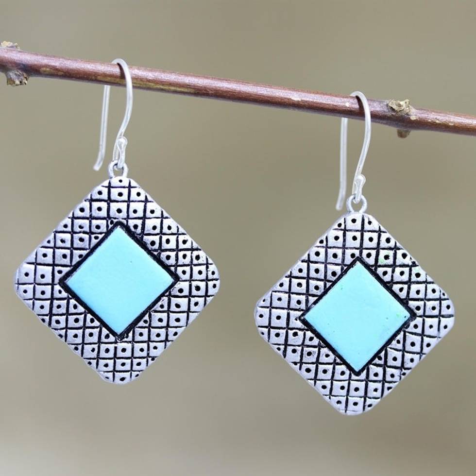 Hand Painted Ceramic Dangle Earrings from India 'Silver Plaza' Item ID: 2671789958