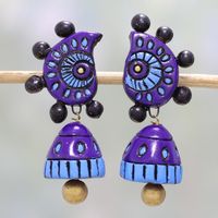 Hand-Painted Ceramic Dangle Earrings in Blue from India 'Grandiose Sky' Item ID: 2671791086