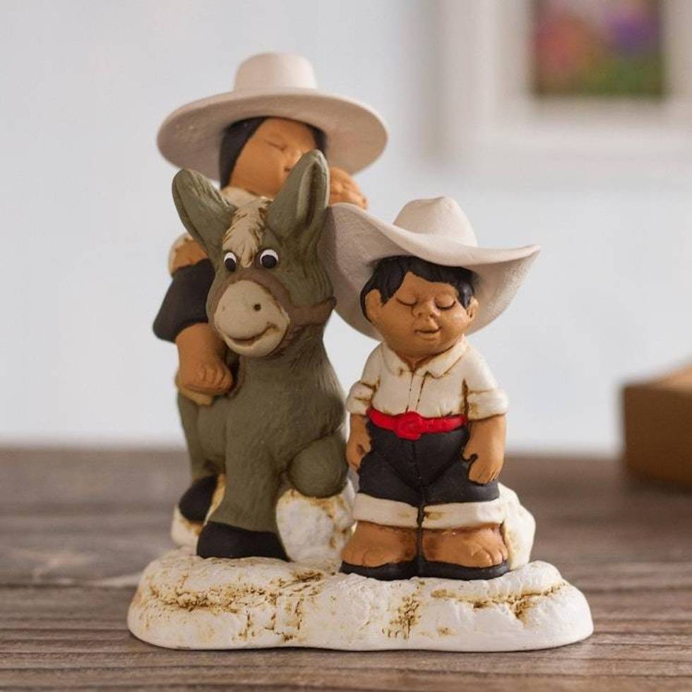 Hand-Painted Ceramic Figurine of an Andean Family from Peru 'Andean Duo' Item ID: 2676641814