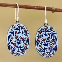 Hand Painted Ceramic Floral Dangle Earrings 'Fresh-Cut Flowers' Item ID: 2671789737
