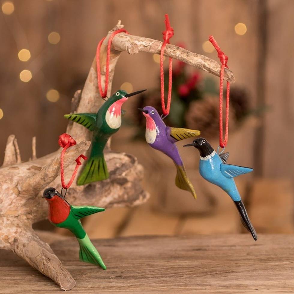 Hand-Painted Ceramic Hummingbird Ornaments Set of 4 'Lively Hummingbirds' Item ID: 2669923513