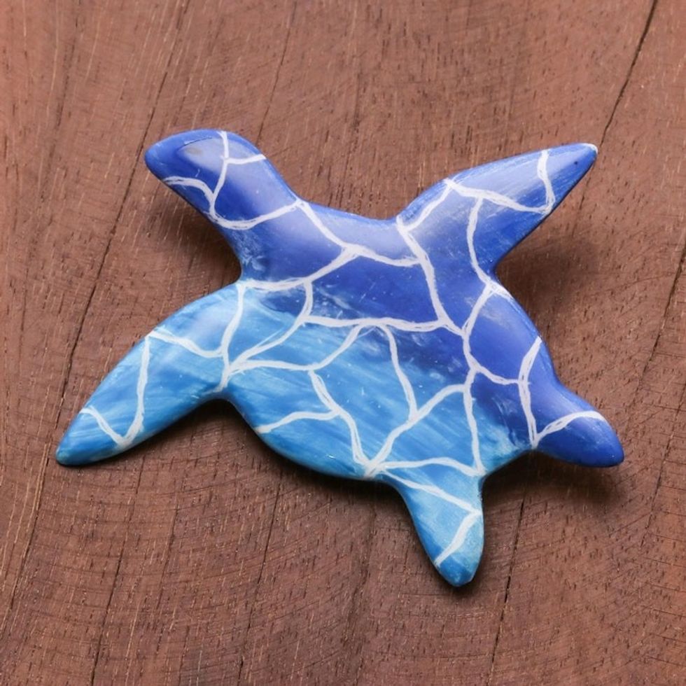 Hand-Painted Ceramic Sea Turtle Brooch in Blue 'Sea Turtle Love' Item ID: 2671798870