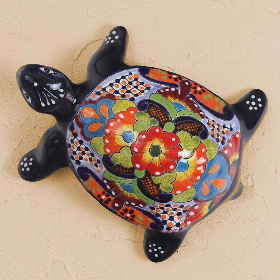 Hand-Painted Ceramic Turtle Sculpture from Mexico 'Cute Turtle' Item ID: 2671639935