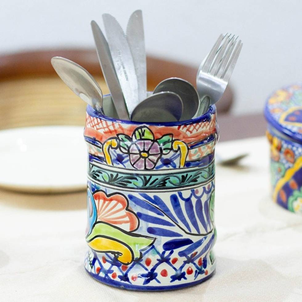 Hand Painted Ceramic Utensils Container from Mexico 'Colonial Guanajuato' Item ID: 2669897604