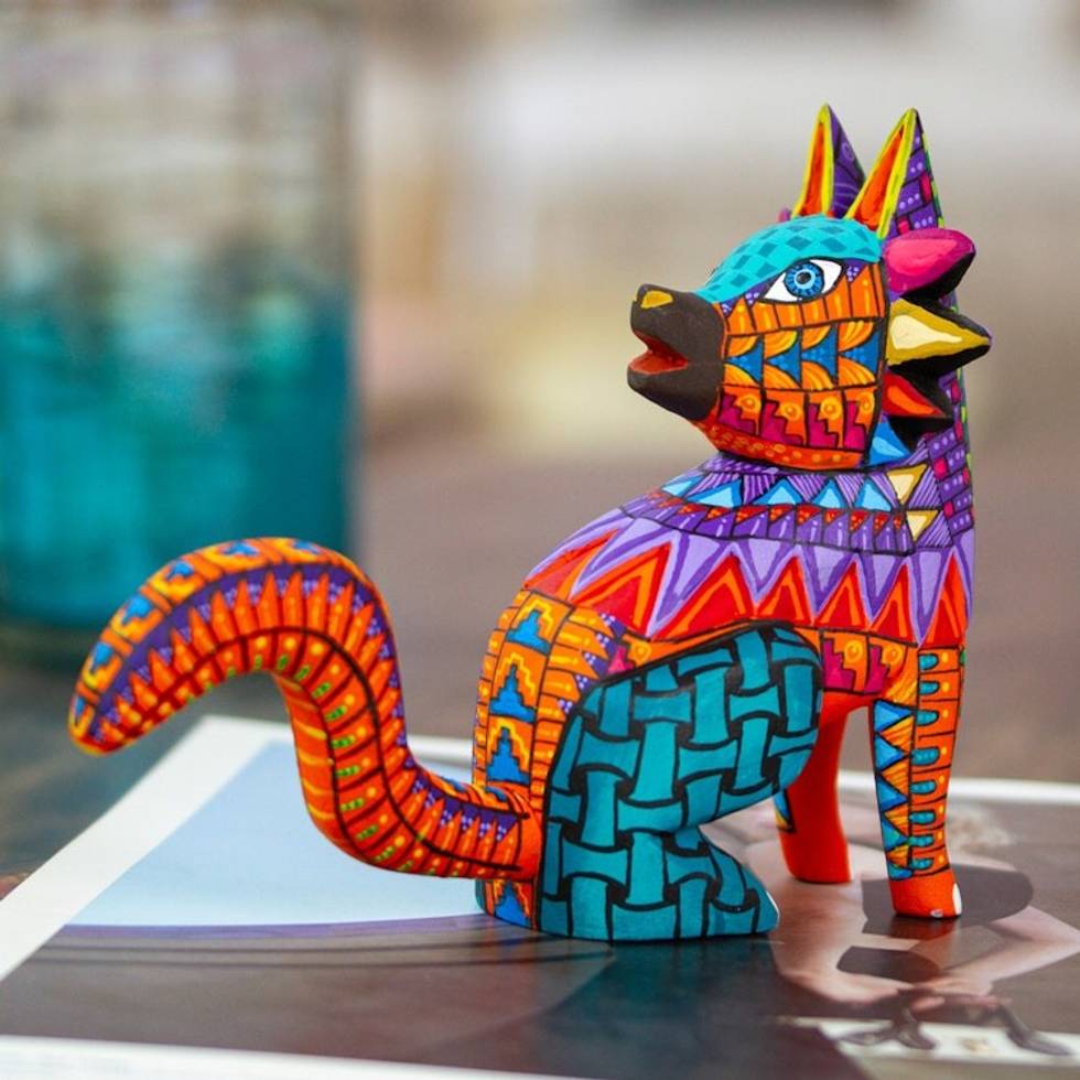 Hand-Painted Colorful Copal Wood Wolf Alebrije Figurine 'Leader's Fantasy Fur' Item ID: 2671807781